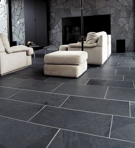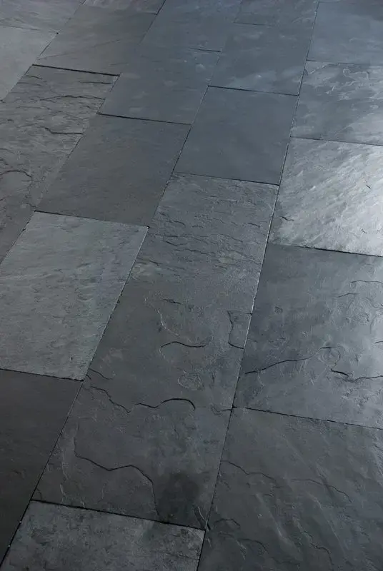 A tonalidade natural da ardósia harmoniza com madeira, vidro, cimento queimado e metais, sendo ideal para ambientes modernos, industriais e rústicos elegantes.